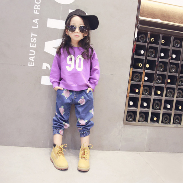 子供服 セットアップ 女の子 長袖 春秋 秋着 上下セット 韓国子供服 キッズ ジュニア Tシャツ デニムパンツ 長ズボン 可愛い おしゃれ 小学生 通学着 新品 Y アユストア 通販 Yahoo ショッピング